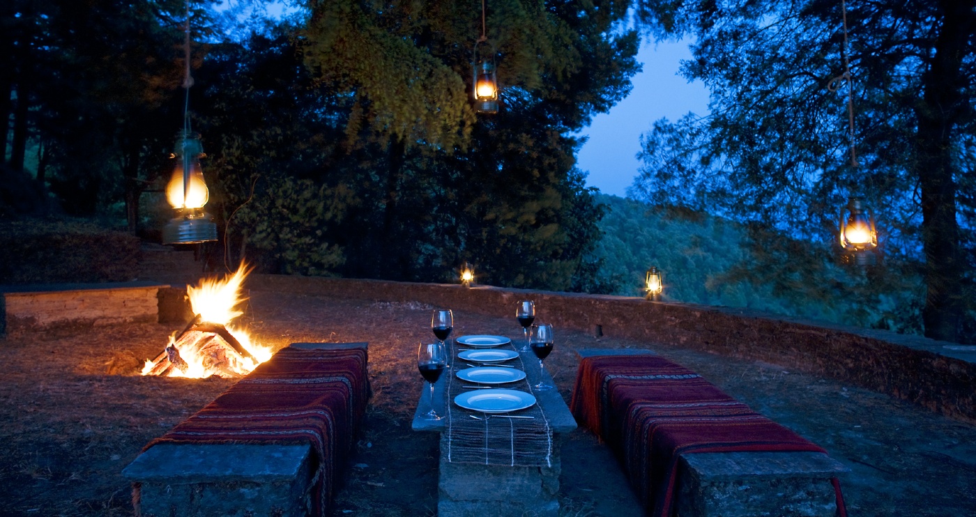 Binsar is walking country and the Estate has mapped out a number of interesting walks, with varying levels of difficulty. The sanctuary boasts of over 250 species of birds and so is a paradise for bird watchers. The Estate organise a picnic lunch during the day-long hikes at a lovely spot in the forest, where guests can enjoy a beautiful view of the snow peaks. Cooking lesson with the chef at the Mary Budden cottage kitchen patio is a highlight of a stay here. The staff also organise performances during the evening bonfire. Every Monday morning, prayers are held at the Shiva temple on the property and guests are welcome to join. A walk down to nearby Dalar village to visit a village home or to visit the primary school, which has less than 10 students and who love to meet and chat up guests, are great opportunities for guests to learn about local life. A sundowner at leopard hill is also a memorable experience.